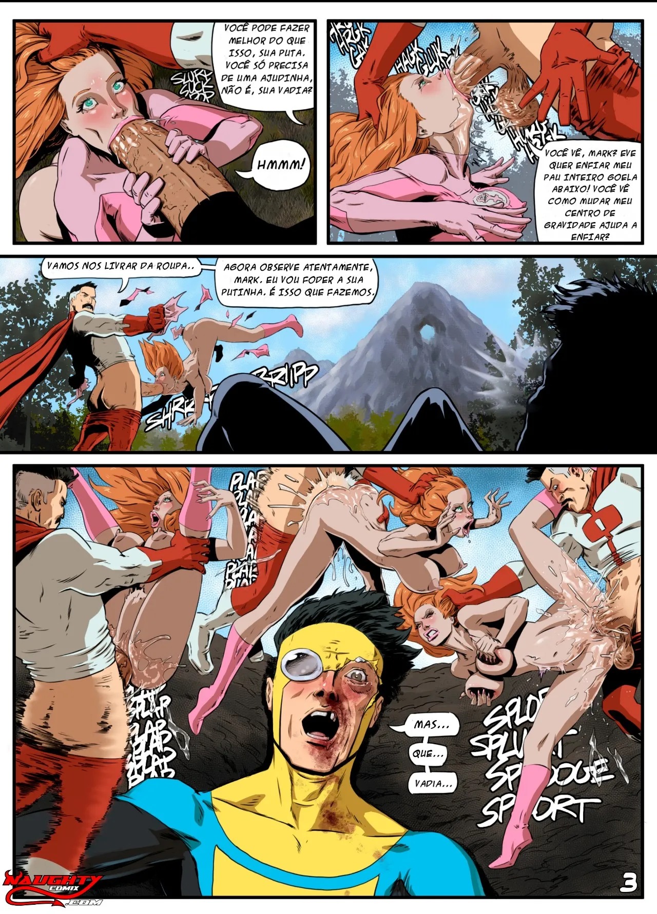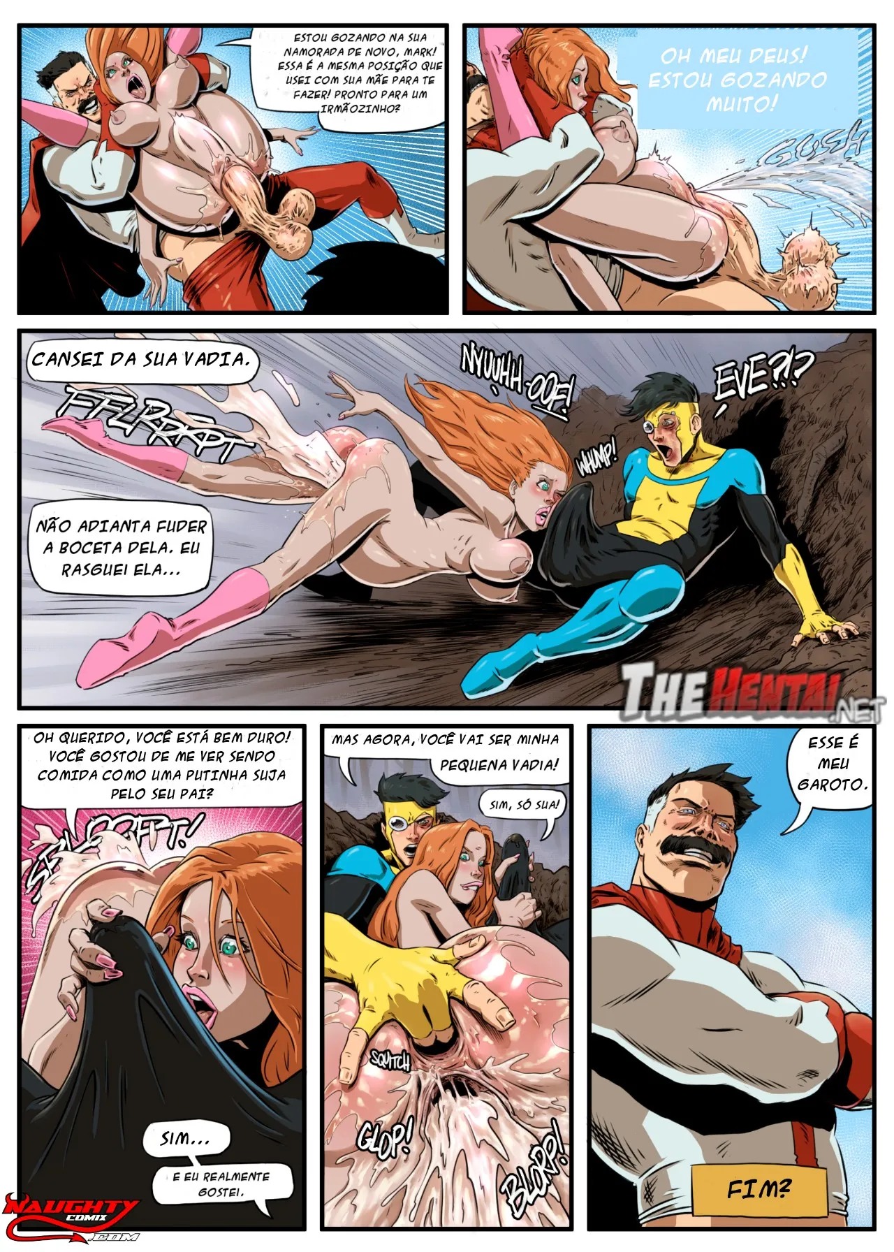 Um hentai home exclusivos de o Invencível com sua namorada Eve Atom, pegando ela de jeito. Quando aparece seu pai Omni-Man, violenta sua namorata, mostra pra ele, que elas são putas pra ele. A garota de Mark, nosso Invincible pornô, se torna escrava do sexo viltromitas.